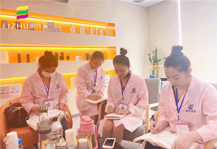 參觀完店面的環(huán)境后,學(xué)員們便開始了接下來為期5天的到店實習培訓(xùn)學(xué)習。早上進行的課程是崗前培訓(xùn)的一些理論知識,以及店面開設(shè)項目的手法概述以及招待禮儀。想要檢驗技能掌握的熟悉程度,就必須通過實踐去體現(xiàn)出來。于是,下午的課程學(xué)員們將會投入到真正的工作中,去鍛煉和提升技術(shù)。