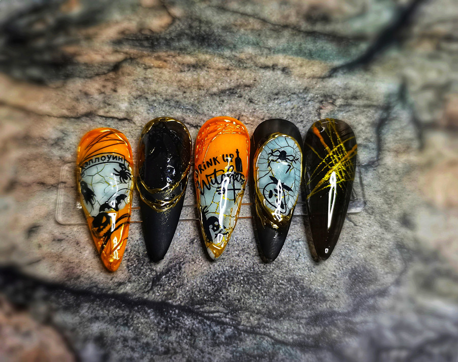 南寧美甲網(wǎng)紅款、美甲培訓(xùn)南寧:萬圣節(jié)是一個(gè)極具魔幻色彩的節(jié)日。在這個(gè)節(jié)日里,做一組與眾不同的特色萬圣節(jié)美甲,定能讓你的造型錦上添花。下面,就來看看以零基礎(chǔ)學(xué)美甲的同學(xué),到廣西南寧美甲款式造型學(xué)校(麗竹美甲學(xué)校)學(xué)習(xí)后繪制的暗黑系美甲吧!