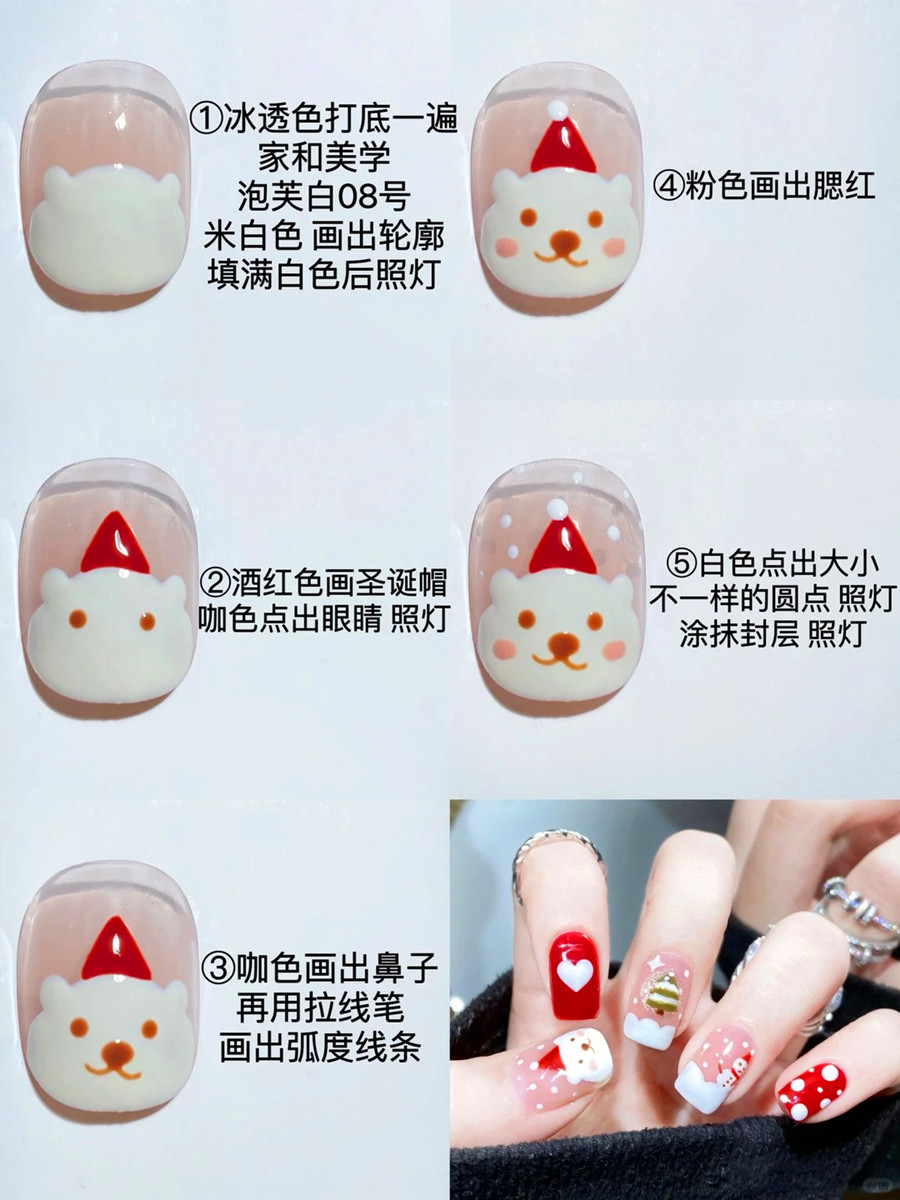 圣誕小熊美甲,南寧美甲設(shè)計學(xué)校分享教程