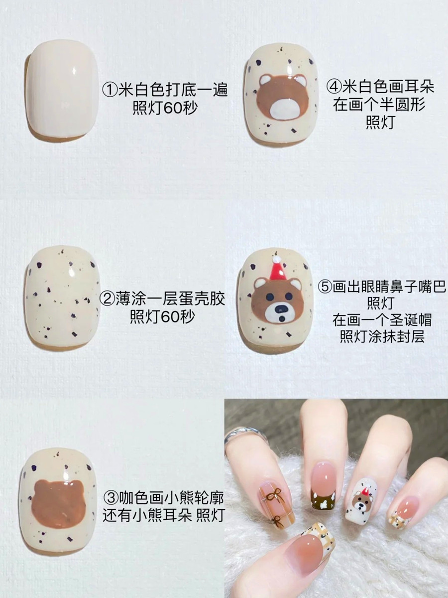南寧美甲、南寧美甲美睫:相信有很多人都會(huì)被圓頭圓腦,看起來憨憨的小熊可愛模樣吸引吧?如果你也喜歡小熊,那趕緊來看看南寧美甲教學(xué)(麗竹美甲教學(xué))分享的格紋手繪小熊美甲教程吧!