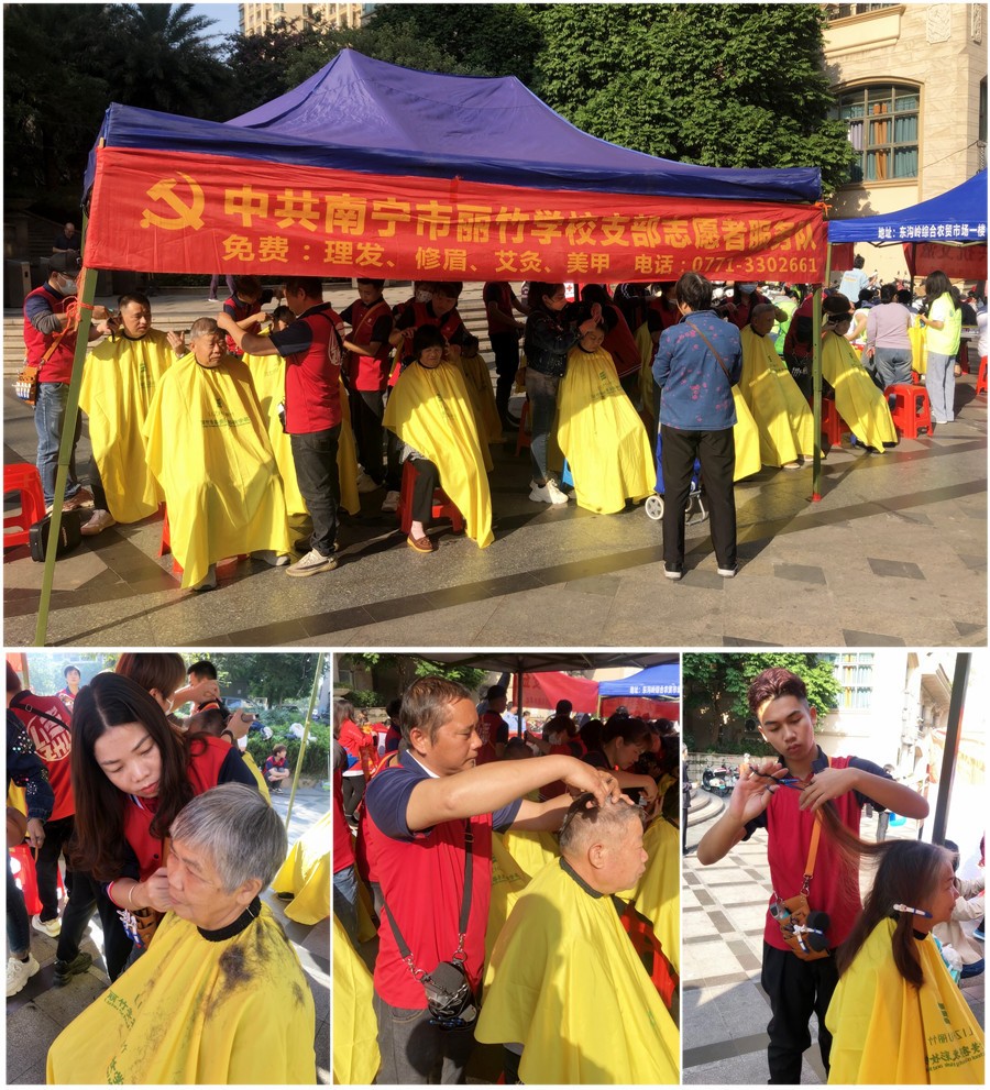 2023年11月28日,廣西理發(fā)剪發(fā)-麗竹美發(fā)志愿者服務(wù)隊(duì)翰林山水源剪發(fā)活動(dòng)