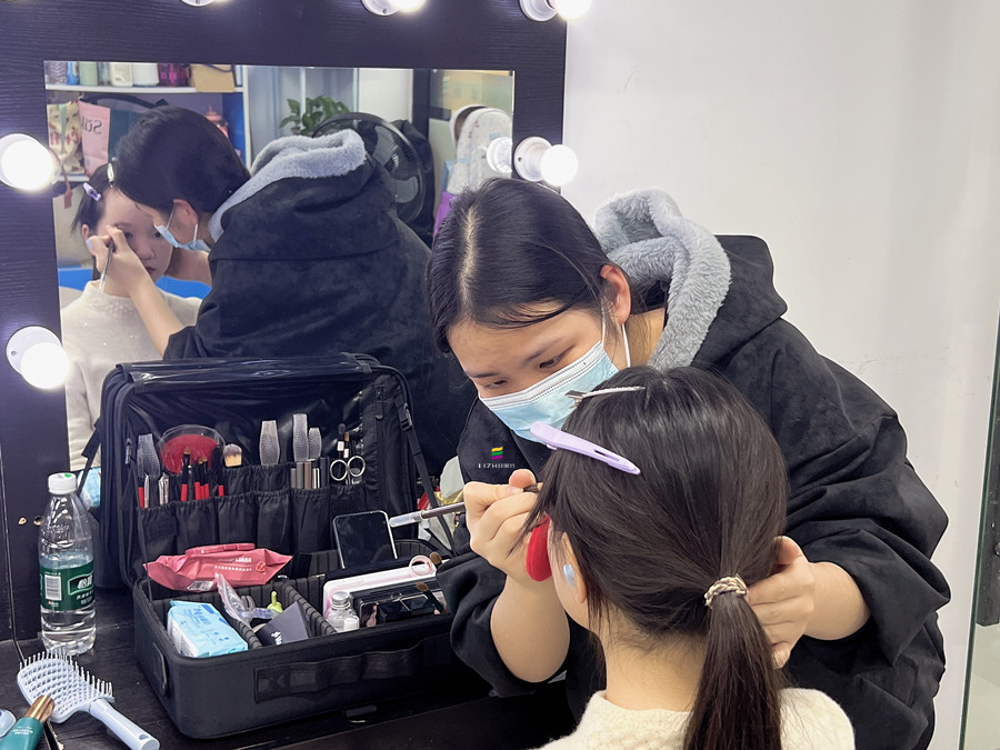 從“假面”打底,手抖畫眉眼唇,厚重顯老修容,軟塌沒形高發(fā)型……到現(xiàn)在可以獨立完成一整個妝面以及造型,都是每次不斷努力實操練習的成果。化妝從來不是天賦技能,而是熟能生巧的手藝。
