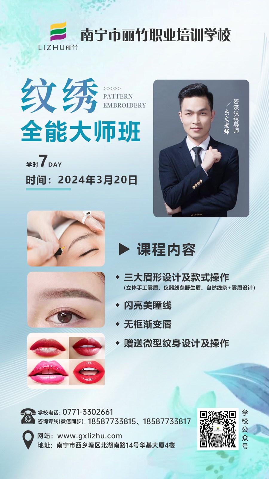 曾經(jīng)的你說過,想到廣西花藝師學(xué)校學(xué)花藝,想知道廣西教紋繡哪里正規(guī)?想知道廣西學(xué)美睫哪里優(yōu)惠?想以優(yōu)惠價(jià)購買彩妝和護(hù)膚品,也許當(dāng)時(shí)廣西美業(yè)職業(yè)培訓(xùn)學(xué)校-麗竹學(xué)校沒能給你滿意的答復(fù),但優(yōu)惠雖遲但到,我們現(xiàn)在帶著滿滿的誠意和親民的3月超熱門課程推薦優(yōu)惠方案來了,只為了滿足你的要求。